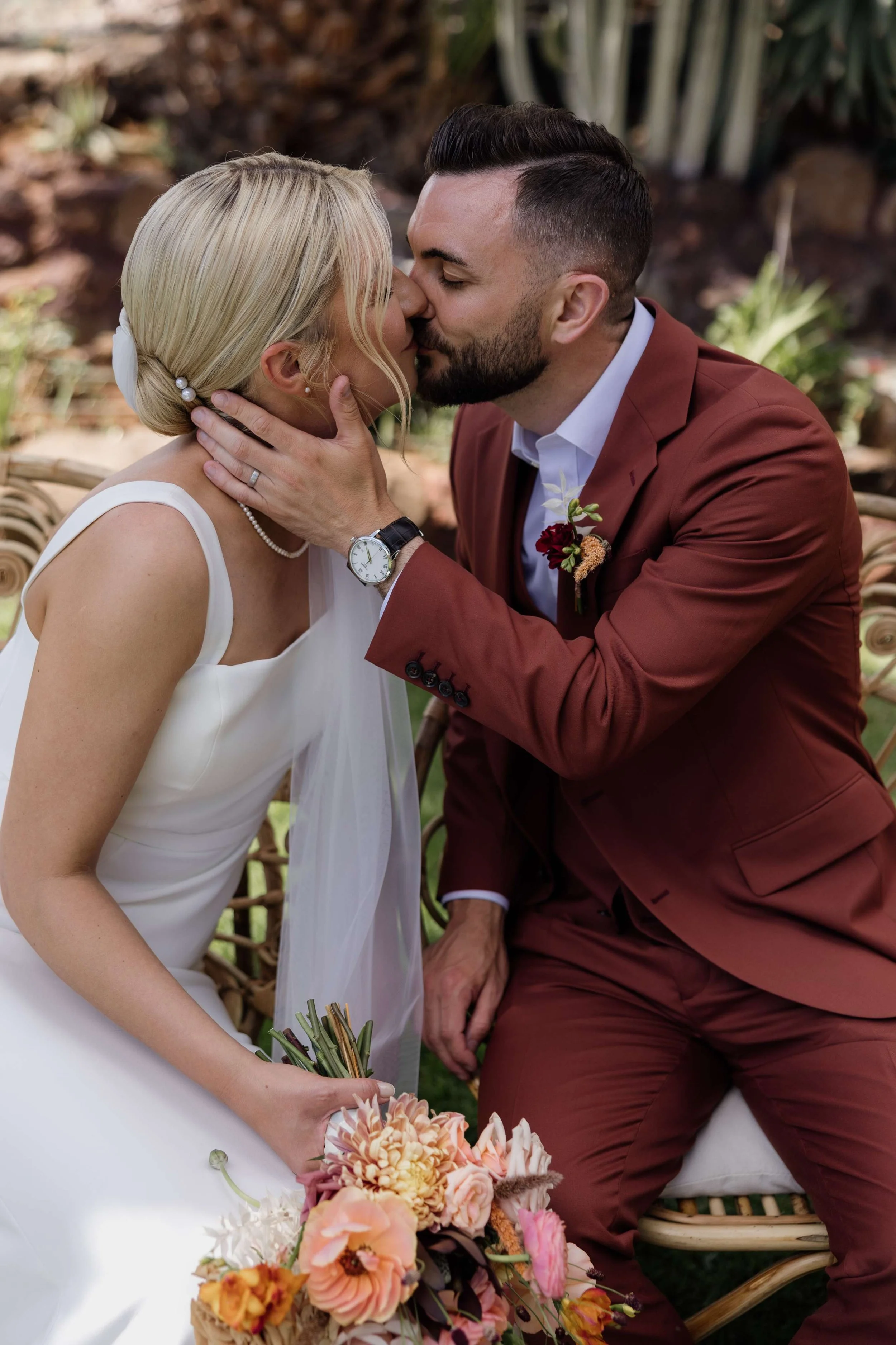 The day began with a sweet garden ceremony, surrounded by nature and gorgeous views. Guests then enjoyed relaxed poolside canapés overlooking local banana plantations and across to La Gomera, accompanied by the romantic sounds of a Spanish flamenco guitarist — the perfect nod to their island setting.
